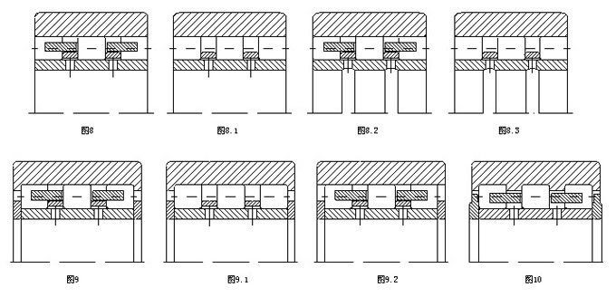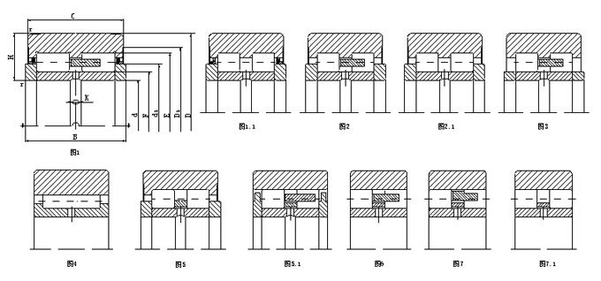 圓柱滾子背襯軸承有兩列或三列滾子,有滿滾子軸承(無保持架)或帶保持架軸承形式,可以帶有或不帶整體式擋邊或擋圈。無擋邊軸承的優點在于它們特別簡單的幾何形狀和非常高的徑向載荷能力。無擋邊或擋圈的圓柱滾子背襯軸承不能承受任何軸向負荷。因此有必要在外圈和支承鞍座側面之間放置青銅或塑料止推墊圈。帶有擋邊(或擋圈)的背襯軸承不需要止推墊圈,因為這些軸承的設計使它們能夠承受同時作用的徑向力和軸向力。圓柱滾子軸承是常用的背襯軸承。